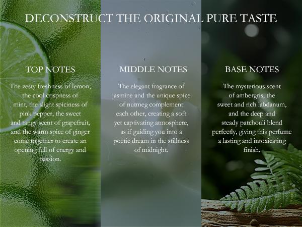 - Top Notes: Lemon, mint, pink pepper, grapefruit, ginger Bold, energetic opening